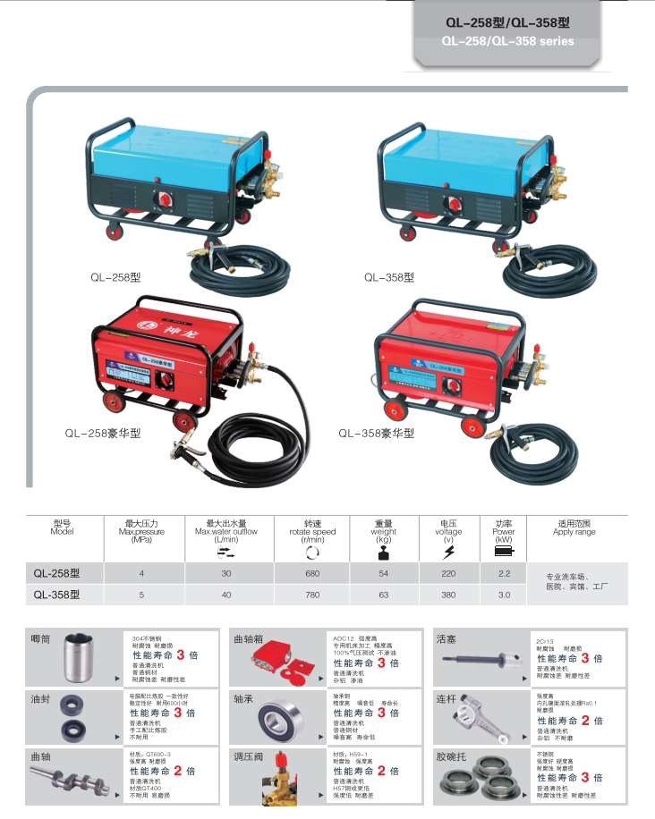上海神龍集團生產的高壓清洗機QL-60型/QL-80型清洗機,適用專業(yè)洗車場、醫(yī)院、賓館、工廠等。